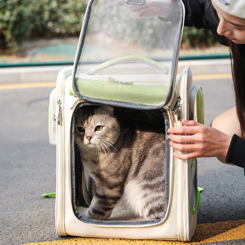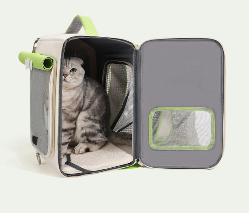 Available in four colours (green, khaki, orange, rose), this backpack is lightweight, foldable, and easy to carry. Perfect for cats and small dogs up to 7.5kg, with a wide opening for easy entry and exit.
